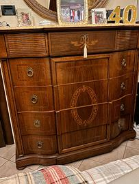 Trittico con piani in marmo più armadio in noce stile classico con finitura in cera a gomito