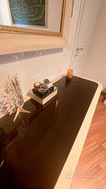 Vendesi Como' + 2 comodini in legno massello color frassino con base vetro temperato fumè color mocha. In ottimo stato, con cassetti capienti e design moderno. No perditempo. Misure Comò: L. 145 * P. 50 * H. 70 Misure Comodini: L 61 * P 46 * H 44