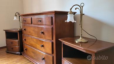 3 mobili di legno massello tinto noce con finitura semiopaca produzione artigianale anni 80. No truciolare o fibra di legno.