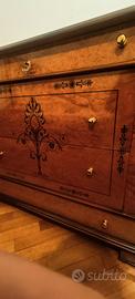 Vendo trittico per camera da letto composto da 1 comò e 2 comodini coordinati, in stile classico ed elegante. Ideale per arredare la camera con un set completo e armonioso.