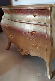 Vendo a malincuore causa cambio arredamento questo bellissimo trittico comò e comodini foglia oro.