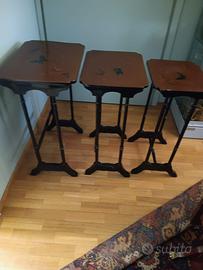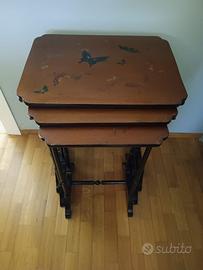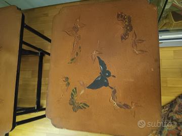 Trittico tavolini giapponese fine ‘800 con farfalle incastonate. Consegna a mano Moncalieri (To).
