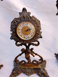trittico in bronzo composto da : due candelabri e un orologio carica manuale. primi 900. peso totale 6.380 kg