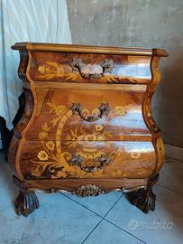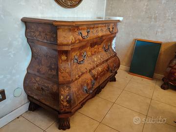 Trittico olandese a zampa di leone con maniglie in bronzo, intarsiato da maestro ebanista con specchio abbinato.