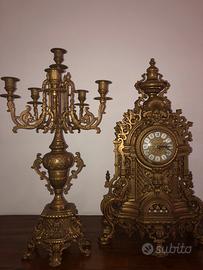 Trittico - Set di due candelabri e orologio - in ottone stile Impero