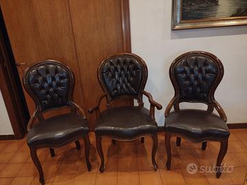 Trittico poltrone in pelle e legno di mogano in perfetto stato, vendesi euro 500