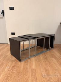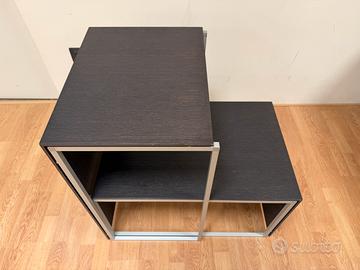 Vendo trittico di tavolini di Molteni&C design Hannes Wettstein. Tre tavolini di servizio, una infinità di composizioni. Utilizzabili in diverse posizioni grazie al piano d’appoggio che si estende su due lati, i tavolini sono un versatile complemento del salotto. Dimensione del tavolino più grande 72x50x41 La struttura è in alluminio mentre i piani sono in legno impiallacciato essenza wenge su anima molto solida ed esile in metallo. Possibilità di organizzare la spedizione a costi ragionevoli Design alto livello come B&B Italia, Minotti, Flexform, Maxalto, Cassina, Living Divani, Poliform, Baxter, Piero Lissoni, urquiola, starck, Lema, porro, Rimadeiso, poltrona Frau.