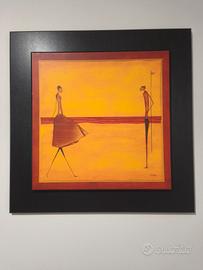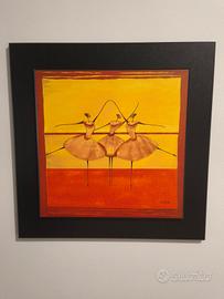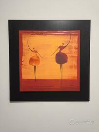 Splendido set di 3 quadri d'autore firmatiThierry Ona, artista francese celebre per il suo stile contemporaneo e i colori caldi. Le opere raffigurano eleganti ballerine e figure stilizzate nei toni dell'arancio, ocra e rosso terra, perfette per arredare un soggiorno moderno, un ufficio o una camera da letto con un tocco di classe. Dettagli: Tecnica:Stampe di alta qualità su tavola (legno/MDF). Cornice:Elegante bordo nero a contrasto integrato. Stato:Ottime condizioni, pronti da appendere. Stile:Moderno, Minimalista, Etnico-Chic. Un'ottima opportunità per chi cerca un elemento d'arredo coordinato e di grande impatto visivo.
