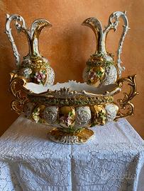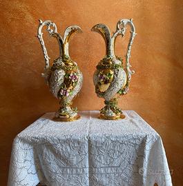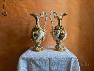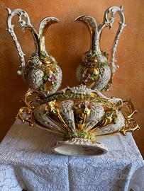 2 Anfore e un vaso Capo di Monte decorate a mano vintage Sesto Fiorentino . Made in Italy -