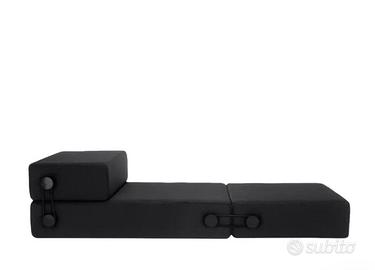 Disponibili due articoli, il prezzo e’ riferito ad uno. Ho acquistato i tappini sostituitivi perche quelli che c’erano erano segnati. Bisogna solo applicarli estraendo quello rovinati/rotti. Ideale per mansarde come divano, letto o pouf. Trix è una seduta veramente geniale dalle mille trasformazioni. Può essere un originale pouf per due persone (H 40 x L 100 x P 75 cm), una chaise longue su cui rilassarsi (H 40 cm x L 160 x P 75 cm) o ancora un letto estremamente confortevole (H 20 x L 200 x P 75 cm). Costituita da 3 cuscini di diverse dimensioni collegati tra loro da un elegante sistema di elastici, si trasforma con un semplice movimento di rotazione per adattarsi ai vostri bisogni. C'è bisogno di una seduta supplementare? Trasformatela in un pouf. Voglia di relax? Apritela a chaise longue. Avete un ospite per la notte? Il letto supplementare è pronto in un batter d'occhio! Estremamente pratica, vi permette di economizzare lo spazio. Veramente confortevole e sfoderabile, è realizzata in poliuretano espanso con rivestimento in tessuto sintetico a trama tridimensionale. Disponibile in nero.