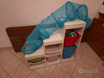 Marca:Ikea TROFAST. Una serie allegra e resistente che ti permette di tenere in ordine i giocattoli. La struttura è dotata di guide di scorrimento, così puoi collocare contenitori e ripiani dove vuoi e spostarli quando cambiano le tue esigenze. Una soluzione bassa, che permette ai bambini di tenere in oridine e raggiungere facilmente i loro giocattoli.