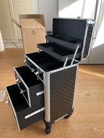 SONGMICS Trolley per cosmetici, Valigia Porta Trucchi, Trolley Make Up, 2 Cassetti, Grande, Ruote Girevoli a 360°, Beauty Case da Viaggio, per Truccatori, Idea Regalo