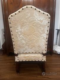 Coppia di sedie da trono, originali Fauteuils in stile Luigi XIV, in noce intagliato a patina scura, spalliera ad arco, braccioli mossi con estremità a voluta, cartella tra le gambe anteriori a ricciolo stilizzato, ricoperto