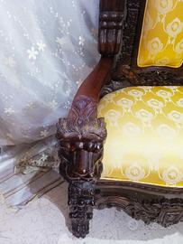intagli floreali e braccioli con raffigurata testa di leone. Certificato di Garanzia in evidenza.