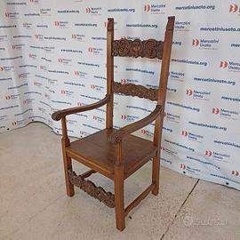 Trono stile Rinascimentale in Noce. Struttura in legno massello di Noce