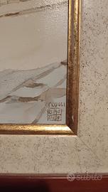 Raro olio su tela di Aldo Riso, maestro noto per gli acquarelli. Misure del dipinto 35x50, con la cornice in massello 50x70 . Titolo "Trulli". E' presente certificato di autenticità di Edarcom Europa, storica galleria d'arte romana.