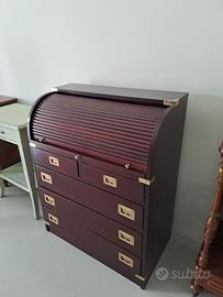 Trumo' / Bureau stile marinaro in legno di mogano scuro, con serrandina a tapparella, inserti in ottone L. 80 p. 45 h. 102 completo di specchio, escluso trasporto