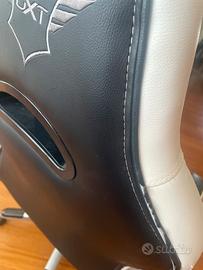 Sedia gaming bianca e nera vendo montata, solo ritiro a mano a Milano, zona San Siro. Buono stato, qualche difetto sul bracciolo sinistro, parte posteriore e inferiore come da foto pubblicate