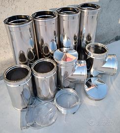 Vasta gamma di tubi ed accessori per la realizzazione della canna fumaria tutti in acciaio inox. Sono disponibili: elementi lineari, gomiti di tutte le gradazioni, raccordi con tappo raccolta condensa, tramogge su misura, riduzioni su misura, cappe per camino su misura,valvole di regolazione fumi, tutti i tipi di cappello sia tondo che quadro, fascette e staffe di ancoraggio a parete. Il tutto sia monoparete che coibentato. Per maggiori informazioni su misure e prezzi rispondere all'annuncio o contattare telefonicamente.