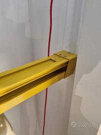 Coppia di tubi appendiabiti per cabina armadio con finitura color giallo acceso e illuminazione LED integrata sul tubo inferiore.