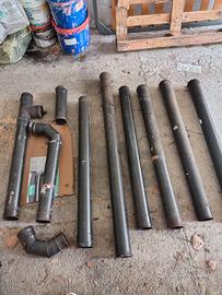 serie di componenti per il sistema di scarico fumi di una stufa a pellet realizzati in acciaio verniciato nero opaco. diametro 80mm 6 metri di tubi dritti 2 curve 45 gradi 2 tubi dritti da 30 cm 1 tubo dritto da 60 cm 1 tubo dritto da 40 cm 1 raccordo a T Vendo usati ma in buono stato solo da pulire prezzo leggermente trattabile ritiro a carico del acquirente