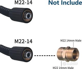 【Attenzione】Non adatto a idropulitrici elettriche con attacco M22 da 15 mm. Se possiedi un'idropulitrice elettrica Sun Joe, Campbell, MI-T-M, AR Blue, Stanley, Cleanforce, Simoniz o Excell con attacco M22-15, hai bisogno dell'adattatore qui sotto. Nome prodotto: Kit adattatore per idropulitrice Tool Daily, kit di collegamento rapido, da M22 femmina metrico da 15 mm a M22 maschio, 5000 PSI