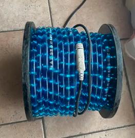 Tubo luminoso lungo 45 mt con ganci per eventuale fissaggio, color blu.