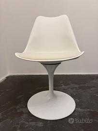 Insieme a set di sei poltroncine Tulip sempre in alluminio laccato bianco con scocca in plastica e seduta in ecopelle.