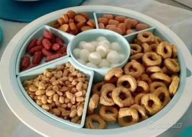 un'infinta varietà di antipasti da servire in un unico piatto per accontentare tutti i gusti!, gli inserti possono essere posizionati a piacere per permettere di scegliere anche la quantità da inserire. è dotata di sigillo nella sezione centrale per poter coprire la parte centrale oppure per utilizzarlo come piatto dove appoggiare altre cose.puoi scegliere anche per servire frutta fresca tagliata a pezzetti, crostini e altre ricette. il vassoio bianco può essere utilizzato per abbellire l'antipastiera azzurra o per contenere del ghiaccio per mantenere le tue pietanze sempre al fresco.