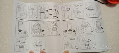 Compreso di libretto istruzioni e laccio. La parte sotto può essere utilizzata anche come bicchiere.