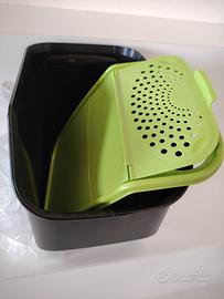 Mangiasano: Capacità 3,9L con in dotazione sia un semplice coperchio ermetico, sia un coperchio ermetico dotato di contenitore per condimenti e mestolo.
