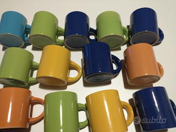 Tazzine da caffè colori vari..PZ 14.. zuccheriera con cucchiaio e coperchio.. tre contenitori per noce moscata.. altro servizio completo in scatola da 6 tazzine e piattini tognana... servizio Alexander collection Originale in acciaio lucido 4 PZ...un vassoio...una ciotola...una insalatiera...piatto pizza completo di taglia pizza... tazza da infusi con coperchio e filtro porcellana Negroni.. tazza Nutella con logo e stampo..due bicchieri amaro silano con logo e stampo ..6 coltelli da bistecca..un coltello da sfilettare...Tiraboschi...totali 52. PZ a 150.00 affare.. FOTO DETTAGLIATE DI TUTTO A REALI INTERESSATI