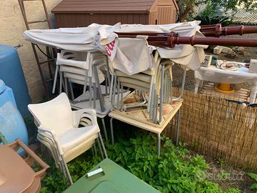 Cisterna 800lt 2 ombrelloni coca cola 3x3 cn piantane 4 tavoli con 12 sedie Marca coca cola e ichnusa Note.1 ombrello presenta piccoli tagli nel telo