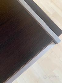 Maße/Misure: 129,5 x 49,5 x 50cm Farbe/colore: dunkelbraun und grau/ marone scuro e grigio Material/materiale: Holz, Aluminium und Glas / legno, aluminio e vetro