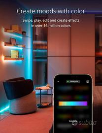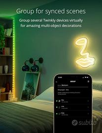 EFFETTI PERSONALIZZATI: scegli tra più di 16 milioni di colori e esprimi la tua creatività disegnando virtualmente gli effetti con il dito; usa la tua immaginazione e crea l'illuminazione decorativa definitiva grazie all'App Twinkly