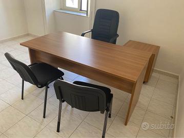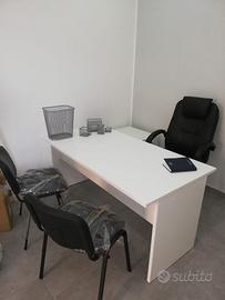Ufficio completo, composto da scrivania fianco legno,poltrona operativa in ecopelle su ruote,2 sedie fisse con struttura in ferro e rivestite in ecopelle o tessuto, e cassettiera tre cassetti con chiusura simultanea e su ruote. Disponibili vari colori. Spedisco in tutt'italia. Per maggiore informazioni sempre meglio chiamarmi o contattarmi tramite whatsapp 333 2204381.