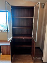Ufficio completo di tre sedie in pelle , vetrina porta documenti e scaffale con cassettiera .. legno massello ..