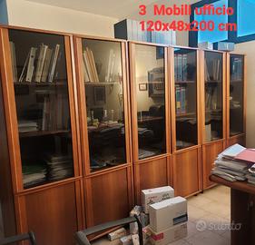 UFFICIO DIREZIONALE SCRIVANIA CON ANGOLO + 3 ARMADI A DUE ANTE CON VETRI E RIPIANI + CASSETTIERA 3 CASSETTI + SEDIA DIREZIONALE + SEDIE CORTESIA