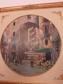 olio su pannello 60 x 60 con cornice del maestro Ugo Mascolo pittore napoletano di livello nazionale e internazionale le sue opere sono esposte sia in italia che all'estero. Conosciuto come il pittore dei caratteristici vicoli di Napoli e non solo. Raffigurante San Gregorio armeno.