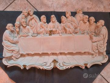 Bellissimo rilievo raffigurante L’Ultima Cena, realizzato in gesso e dipinto a mano con grande cura dei dettagli.