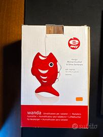Pregevole oggetto sia di pratico utilizzo che di elegante arredamento. Riempendo la forma ittica di aqua e appendendolo a un elemento riscaldante si otterra un ambiente piacevolmente umidificato, con il beneficio aggiunto del sapiente e ilare scherzo ittico. Solo per veri intenditori, astenersi perditempo.