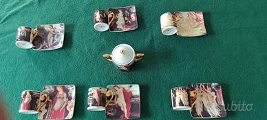 In fine porcellana inglese Royal Porcelain, vendo inusitato artistico servizio caffè da 6 (6 tazzine + 6 piattini) più relativa zuccheriera.