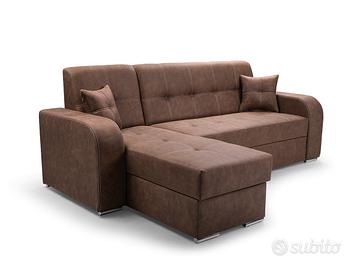 - PREZZO VALIDO FINO AL 01 APRILE 2026! - Cerchi un divano contemporaneo e che resista nel tempo? I nostri divani, prodotti da aziende competenti e specializzate, sono pezzi unici, realizzati su misura per soddisfare i tuoi gusti più esigenti. Questo divano è realizzato con materiali di prima qualità e costruito per resistere. La struttura solida e i rivestimenti di alta qualità assicurano una resistenza eccezionale all’usura. Personalizzalo con il rivestimento che preferisci e goditi il comfort di un divano su misura. Prodotto esclusivo, creato appositamente per te. Sottolineiamo che il rivestimento della funzione letto che fuoriesce può essere di colore diverso da quello evidenziato in foto e comunque non è in tinta ed è differente dalla combinazione di colore del divano che si sceglie. Misure: lunghezza 240 cm – altezza 97 cm – profondità 170 cm – dimensione letto 196×124 cm Perché il divano Linz è così speciale? Materiali robusti e di qualità: anima in legno massello e imbottitura in schiuma di poliuretano ad alta resilienza dalla densità di 40 kg/m3. Piedi in metallo. Cinghie di sostegno in ferro per sostenere il peso e le sollecitazioni con maggiore resistenza Funzione letto: si trasforma facilmente in letto, con meccanismo di apertura DELFIN, ideale per ospiti o per un riposo extra Contenitori: dotato di box contenitore spazioso, perfetto per riporre coperte, cuscini, biancheria da letto o altro Posti: per 4 persone, offre spazio sufficiente per tutta la famiglia o gli amici Design: presenta uno stile classico ed avvolgente, con linee morbide e superfici accoglienti. I braccioli sono importanti e molto confortevoli, mentre i cuscini sono ben imbottiti per garantire il massimo relax Versatilità: la sua forma angolare lo rende perfetto per ottimizzare lo spazio in salotto o in soggiorno. La funzione letto ed il contenitore lo trasformano in un elemento multifunzionale, ideale anche per piccoli ambienti