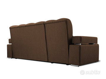 Cerchi un divano robusto e dallo stile contemporaneo? I nostri divani, prodotti da aziende competenti e specializzate, sono pezzi unici, realizzati su misura per soddisfare i tuoi gusti più particolari. Questo divano è realizzato con materiali di prima qualità e costruito per resistere nel tempo. La sua struttura solida e i rivestimenti di alta qualità assicurano una resistenza eccezionale. Puoi personalizzarlo con il colore che preferisci e goderti il comfort di un divano su misura. Prodotto esclusivo, creato appositamente per te. Sottolineiamo che il rivestimento della funzione letto che fuoriesce può essere di colore diverso da quello evidenziato in foto e comunque non è in tinta ed è differente dalla combinazione di colore del divano che si sceglie. Misure: lunghezza 254 cm – altezza 59/97 cm – profondità 178 cm – dimensione letto 200×128 cm Perché il divano Mauritius è così speciale? Materiali robusti e di qualità: anima in legno massello e imbottitura in schiuma di poliuretano ad alta resilienza dalla densità di 40 kg/m3. Piedi in metallo. Cinghie di sostegno in ferro per sostenere il peso e le sollecitazioni con maggiore resistenza Funzione letto: si trasforma facilmente in un letto in più, con meccanismo di apertura DELFIN, ideale per ospiti o per un riposo extra Contenitori: dotato di box contenitore dove riporre coperte, cuscini, biancheria da letto ecc. Posti: per 4 persone, offre spazio per tutta la famiglia o gli amici Design: forte e distintivo, perfetto per aggiungere un tocco di personalità al tuo salotto Versatilità: perfetto per ottimizzare lo spazio della zona living. La funzione letto e il box contenitore lo trasformano in un elemento multifunzionale, praticissimo per piccoli ambienti Rivestimenti: tessuto colorato di alta qualità, disponibile in 4 diverse tonalità. I tessuti del rivestimento sono realizzati al 100% in poliestere di alta qualità, resistente agli strappi e all’usura.