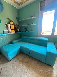 Un divano di microfibra di colore turchese , 4 posti seduta con lunga sinistra , fatto di