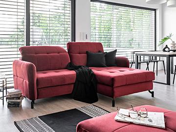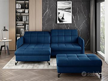Grande novità della nuova collezione di complementi d’arredo salotti con divano letto, il divano letto angolare ad L Chamonix è composto da un divano ad angolo compatto con funzione letto ed un ampio pouf. La sua linea elegante con piedi in metallo nero si abbina perfettamente ad interni sia moderni che classici. Grazie all’utilizzo di schiuma HR altamente elastica, questo modello offre un indiscutibile comfort di utilizzo, coadiuvato anche dai poggiatesta regolabili. Le sue dimensioni ridotte, 225×160 cm, sono perfette per la collocazione in piccoli ambienti. Il divano letto Chamonix è completato da un moderno pouf con contenitore dalle dimensioni di 10×75 cm. In questo articolo è presente anche la funzione relax, che si dispiega con un movimento di una mano, trasformando il divano ad angolo in un comodo letto con una superficie di 200×110 cm. Il modello Chamonix ha un design moderno che sarà perfetto per qualsiasi interno. La disponibilità in un’ampia gamma di tessuti e colori lo rende ancora più accattivante. Il peso complessivo di questo salotto è di 126 Kg! Sottolineiamo che il rivestimento della funzione letto che fuoriesce può essere di colore diverso da quello evidenziato in foto e comunque non è in tinta ed è differente dalla combinazione di colore del divano che si sceglie.