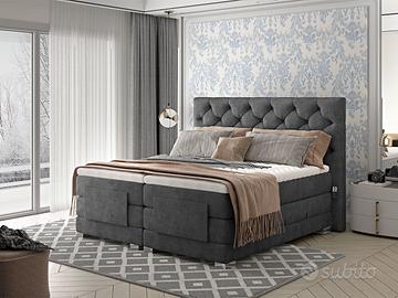 160 X 200 CM Il letto motorizzato matrimoniale boxspring Manhattan è un prodotto nuovo introdotto nella nostra collezione. Si distingue, insieme al modello Utrecht, in quanto è dotato di due meccanismi elettrici con i quali è possibile abbassare o alzare i materassi ed i top singoli presenti. La funzione principale del letto motorizzato boxspring Manhattan è proprio quella di aiutare ad alzarsi e a coricarsi attraverso il suo movimento elettrico e per questo motivo, a differenza degli altri letti boxspring, non è dotato di box contenitori ad apertura laterale. Manhattan presenta anche il miglior sistema di riposo sul mercato poiché il materasso subito sotto al top non poggia, come solitamente accade, su una rete, ma su un ulteriore materasso a molle: questa sovrapposizione di due materassi rende la sua accoglienza elevata. Manhattan è composto dai seguenti elementi: 2 materassi a molle tradizionali fissi, non asportabili, che fungono da base; 2 materassi a molle indipendenti, sfoderabili e di ottima qualità; 2 top singoli sfoderabili che hanno l’importante funzione di accogliere il riposo. Entrambe le piazze di questo modello hanno tre movimenti differenti verso l’alto e verso il basso, che sono separati e perciò ogni piazza è indipendente dall’altra ed è dotata del suo telecomando; ogni piazza ha 4 sezioni (spalle, bacino, gambe e piedi). Oltre alla sua funzione, il modello Manhattan è costituito da una grande testata trapuntata capitonné alta ben 130 cm che gli dona fascino e grande impatto estetico. Per i numerosi elementi della sua struttura, l’altezza complessiva di dove si dorme è di ben 67 cm, per questo motivo Manhattan è adatto ad ogni persona e in particolare per persone con difficoltà nelle funzioni motorie. Il suo peso complessivo è di 208 kg nella versione 160×200 cm e di 217 kg nella versione 180×200 cm. Prodotto funzionale, di qualità ad un ottimo prezzo! EXCELLENT LINE – GARANZIA DI 2 ANNI COME DA NORMATIVA EUROPEA