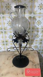 un po di cose Si tratta di undecanter per vinoin vetro con un caratteristico supporto in ferro battuto decorato con foglie. L'oggetto è in vendita al prezzo indicato