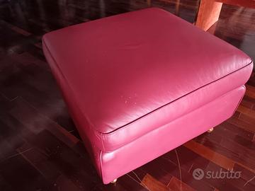 Un elegantissimo grande pouf, realizzato artigianalmente su commissione con gamba in stile anni 50 scolpita a mano e rivestimento in pelle rosso Frau. Il pouf, elemento di grande eleganza adatto a tutte le stanze, non è praticamente mai stato utilizzato.