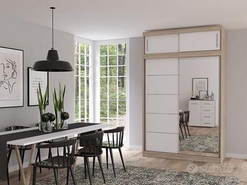 L’armadio Colorado è un’ottima soluzione per chi cerca spazio e funzionalità. Le sue 2 ante scorrevoli lo rendono perfetto anche per le stanze più piccole, mentre il grande specchio non solo ti permette di controllare il tuo look, ma fa sembrare la stanza più grande e luminosa. All’interno, troverai tanto spazio per i tuoi vestiti e accessori. Il vano superiore è ideale per riporre oggetti che usi meno frequentemente, come coperte o valigie. Il peso di questo armadio è di ben 198 kg!